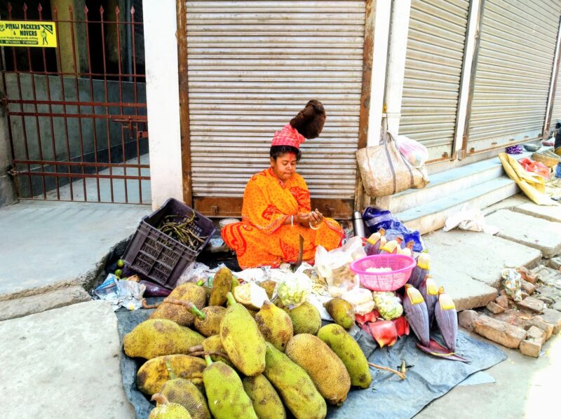 大きな牛が歩き、ごみの山から餌を探している姿や、路上でジャックフルーツを売る謎のヘアースタイルの女性を見て、「これぞインド!」と感じました😲